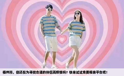 关于梧州市免费相亲平台的介绍和真实案例分享。希望这篇文章能给你带来一些启示和帮助。记住,爱情就在不远处等待着你,不要错过每一个机会哦!
