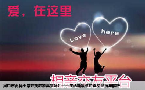 在当下社会,离婚已成为一种普遍现象。在周口市这样的城市,同样存在不少离异人士寻找新生活的经历。周口市离异不带娃找对象是否真实呢?答案是肯定的。 随着社会观念的开放和人们对于婚姻家庭认识的深化,越来越多的人选择离婚后重新寻找自己的幸福。在这个过程中,寻找合适的伴侣成为他们生活新篇章的一部分。周口市作...