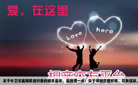 中卫市单身离异男性寻友途径探析在寻求寻找对象的过程中,尤其是对于中卫市离异男性来说,想要获取相关的信息和途径时,首先要明确一点:不是通过某种“官方网址”就能直接找到合适的人。这种需求通常涉及到个人的社交和情感需求,更应当依靠实际的生活圈子、社交活动以及专业的婚恋服务平台来实现。1. 社交活动与圈...